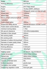 Máy cày thuyền. Đúng như tên gọi, nó là mày làm đất ruộng nước được đặt trên bộ khung dạng thuyền. Động cơ đặt phía trước, hộp số đặt phía sau thuyền. Bánh lồng gắn trực tiếp vào trục hộp số, dẫn động bánh trái và bánh phải riêng biệt. Ghế người lái và chắn bùn trên nóc hộp số. Động lực của động cơ dầu được chuyền qua dây cô roa vào hộp số. Máy cày thuyền rất thích hợp với ruộng lúa nước chân ruộng thụt (sâu). Mày bao gồm đẩy đủ nông cụ: cày đĩa, rải phân, làm phẳng mặt ruộng, bánh lồng và bánh hơi (để đi trên đường). Máy 22 hp// Nặng 760kg// rộng bánh 1250mm// trục cơ sở 1670mm// bán kính quay đầu 1.75m