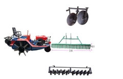 Máy cày thuyền. Đúng như tên gọi, nó là mày làm đất ruộng nước được đặt trên bộ khung dạng thuyền. Động cơ đặt phía trước, hộp số đặt phía sau thuyền. Bánh lồng gắn trực tiếp vào trục hộp...